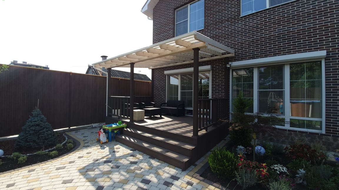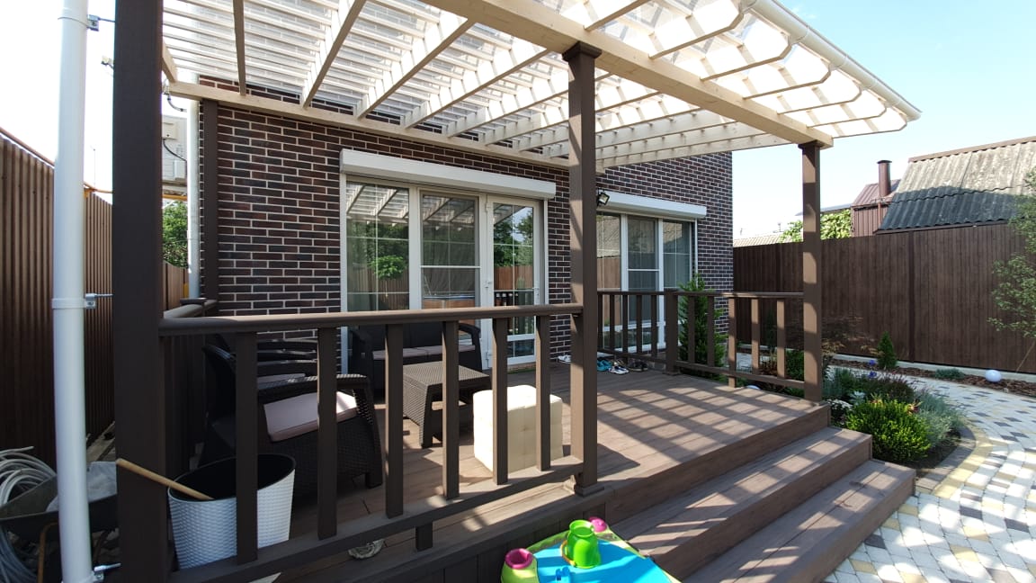 Краснодар, частное домовладение, декинг JAZZ 3D венге, ограждения А1 коричневый