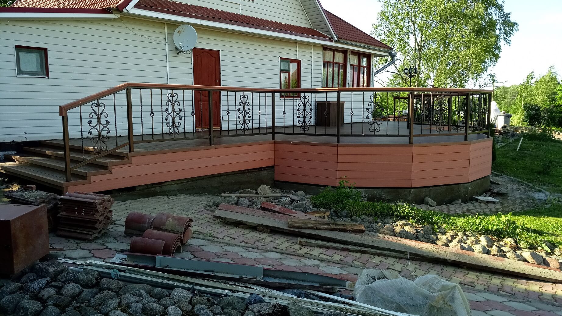 Ленинградская область, деревня Новый Бор Терраса на металлическом каркасе Террасная доска FUSION TEXTURE Палисандр