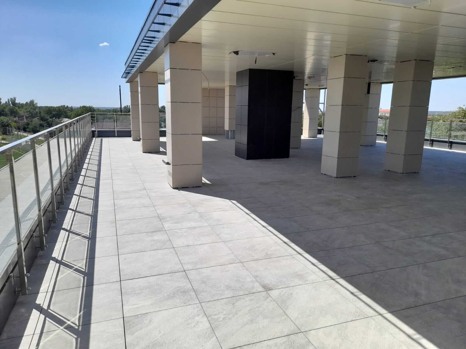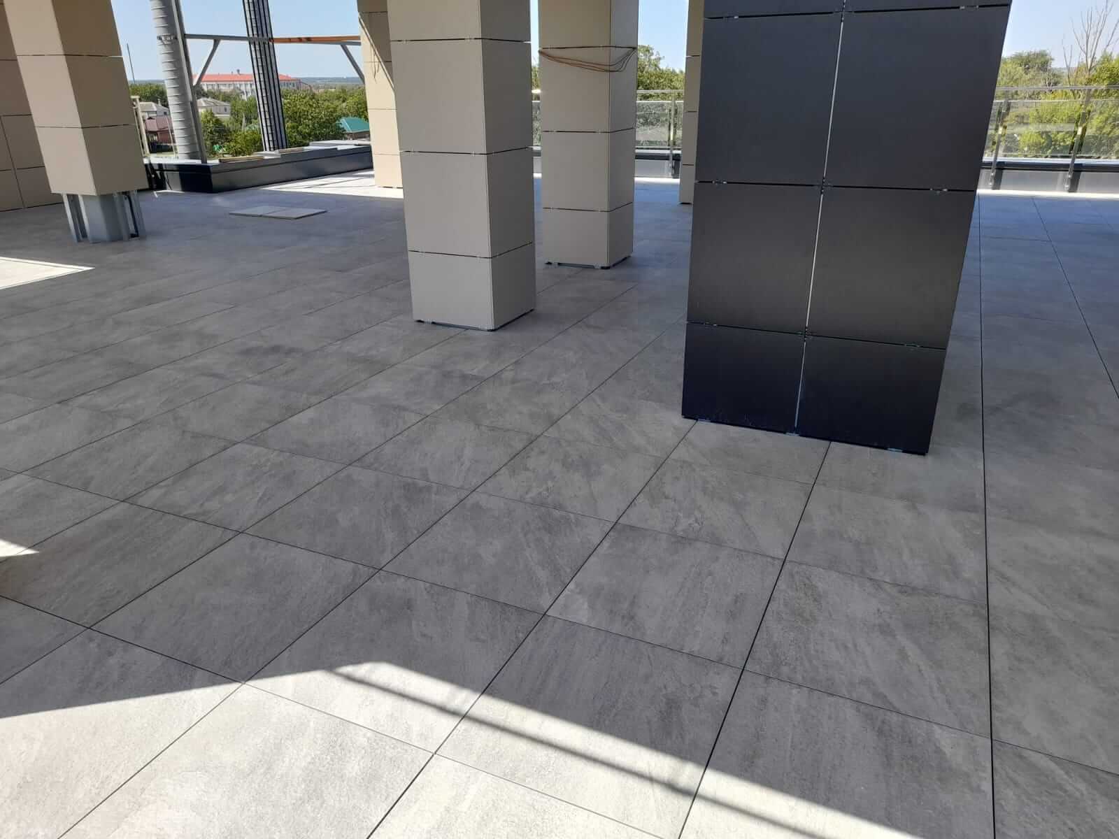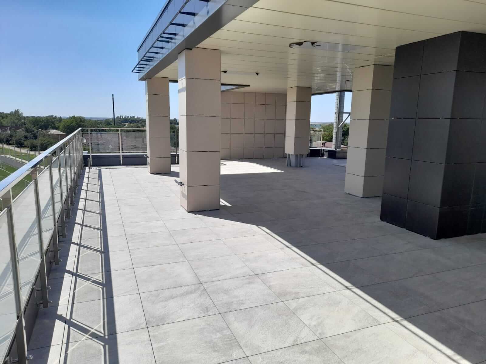 Ростовская область, эксплуатируемая кровля, гостиница "Чайка", керамогранит Atlas Concorde на опорах BASIS
