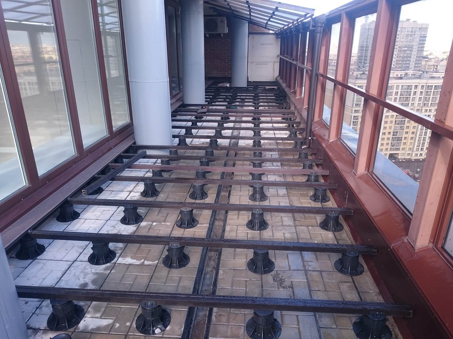 Санкт-Петербург, угловая терраса в ЖК, Регулируемые опоры, террасная доска VELVET CLASSIC